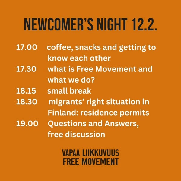 Have you thought about joining us in defending migrant rights? Welcome to Newcomer’s Night by Free Movement to hear about our network!