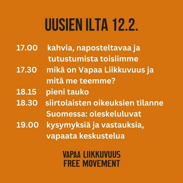 Vapaa Liikkuvuuden uusien ilta klo 17 alkaen keskiviikkona 12.2. – Tervetuloa!
